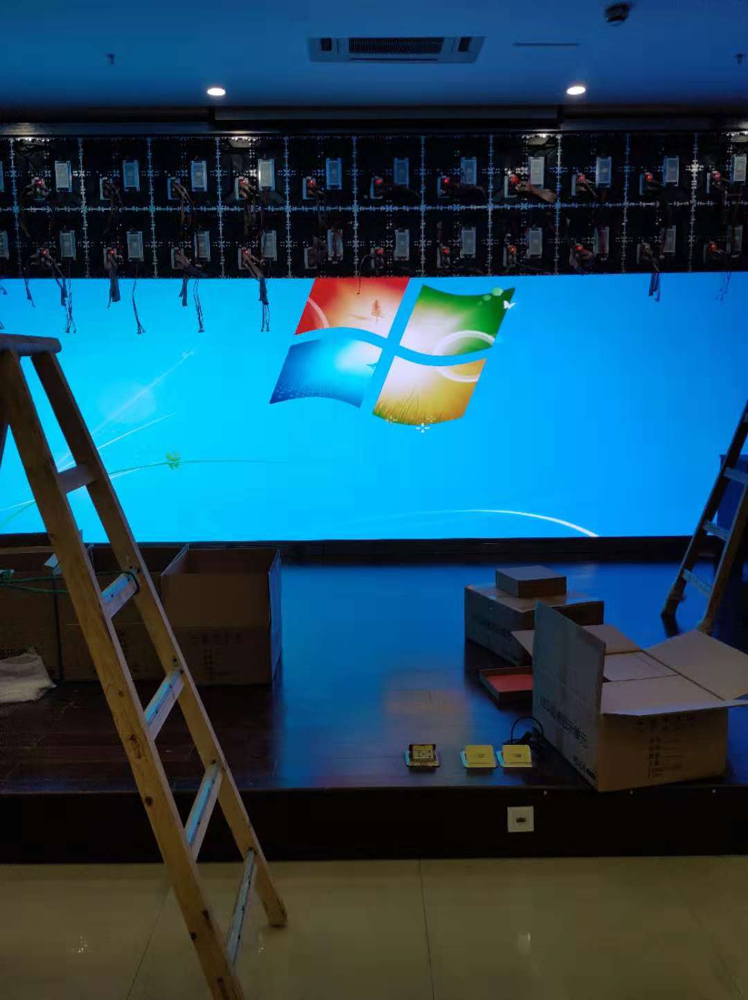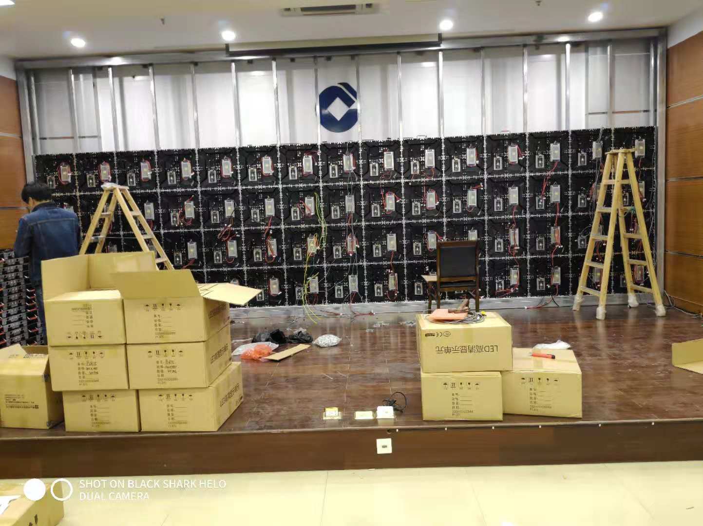衢州建設衢州分行總部會議廳LED全彩屏采用p1.875小間距LED顯示屏 燈珠采用晶臺封裝驅(qū)動采用高刷芯片2053 刷新達到3840